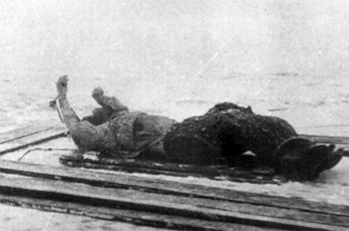 Тело Распутина, извлеченное из Малой Невки.![]()
