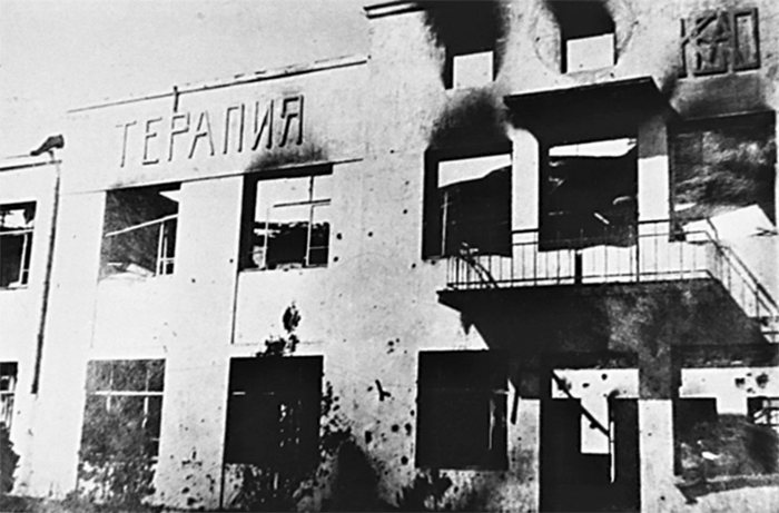 Нальчик. Руины здания терапевтического отделения больницы. 1943 год.