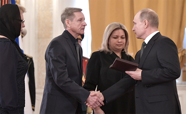 Вручение Золотой Звезды Героя России родителям и супруге Романа Филипова.