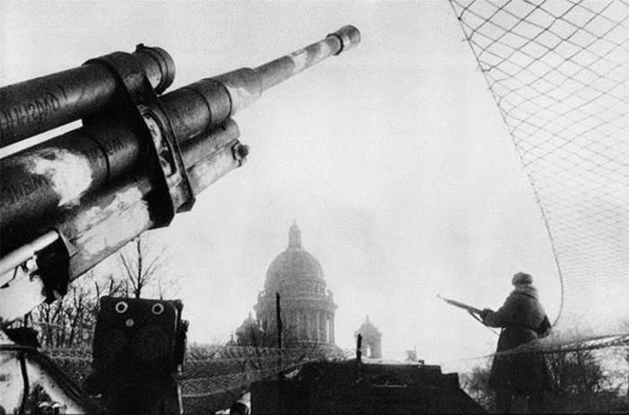 Зенитное орудие недалеко от Исаакиевского собора в блокадном Ленинграде![]()
