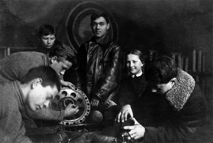 в школьном кружке «Юных друзей воздушного флота», 1923 г.![]()