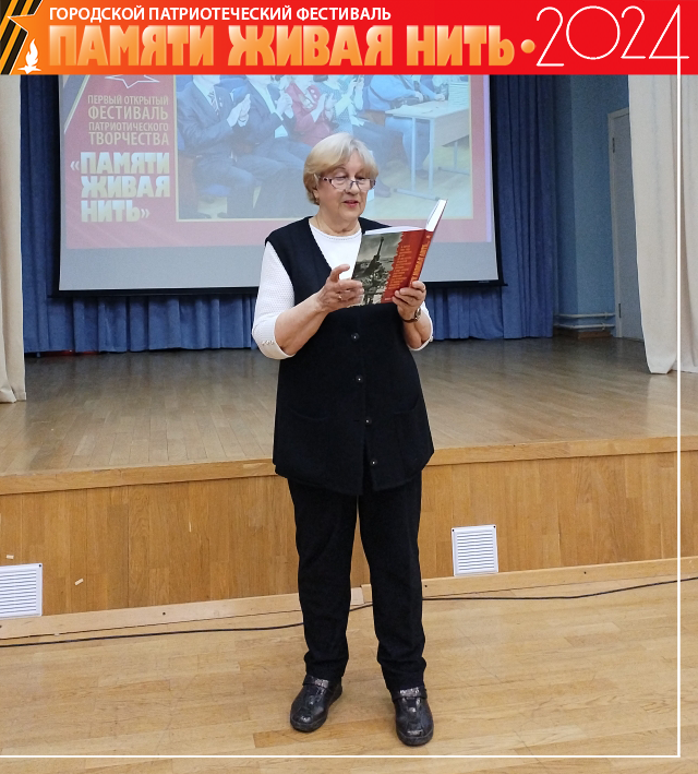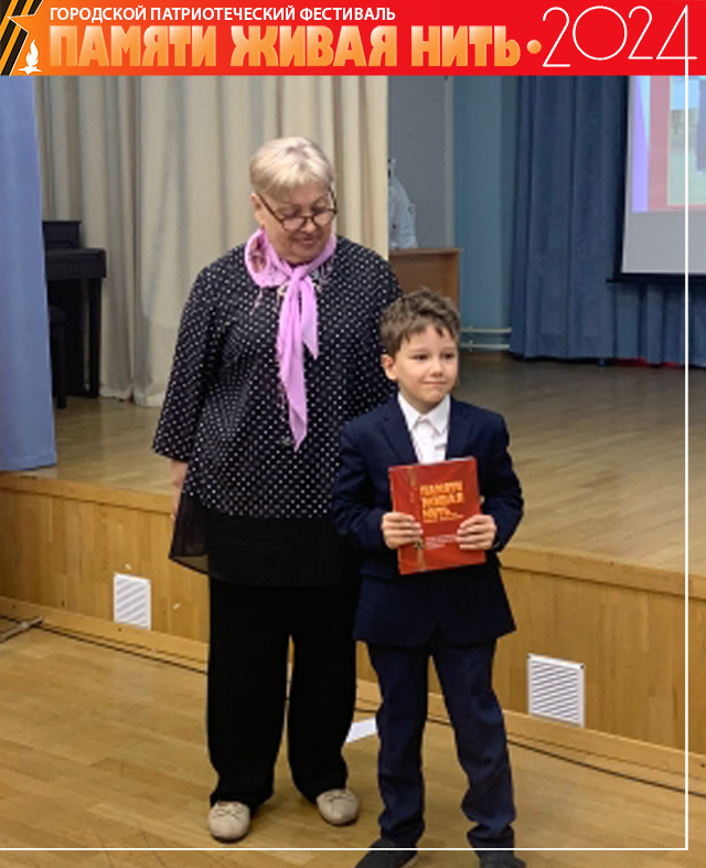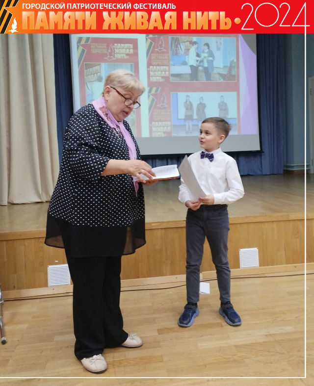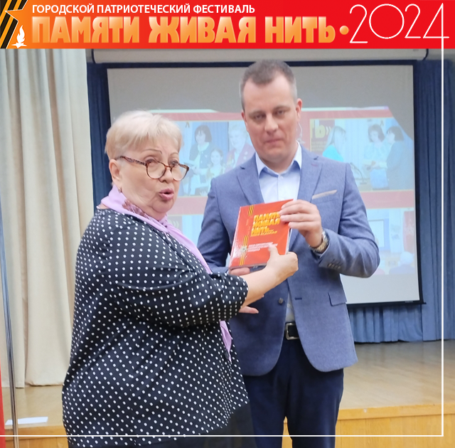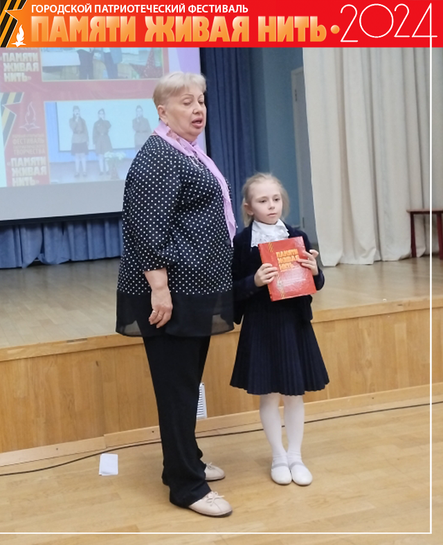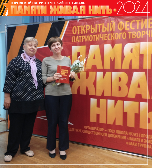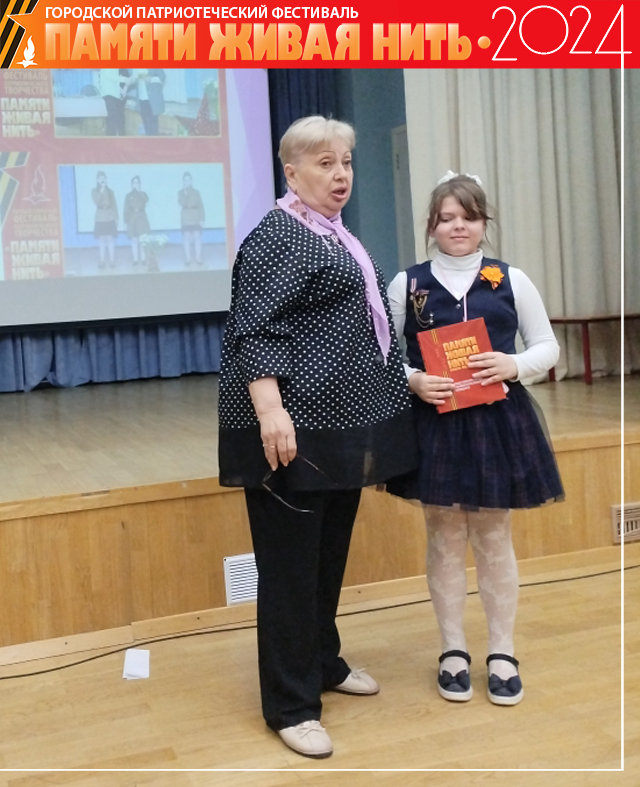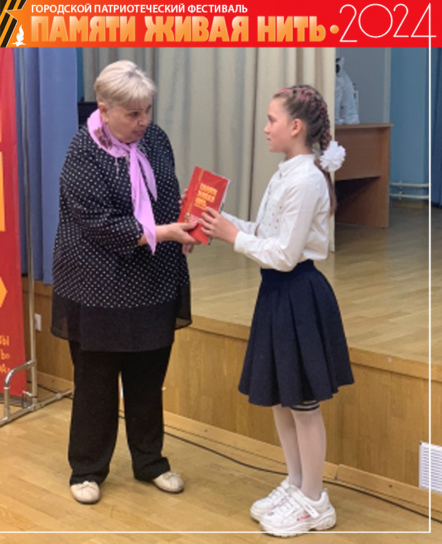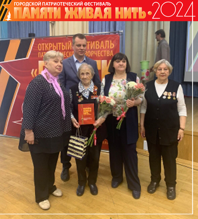 15 мая 2024 года в актовом зале школы № 763 прошло вручение авторских экземпляров только что вышедшей седьмой книги патриотического проекта «Памяти живая нить». Книги получили наши авторы Алиса Хрущева и Софья Николаева, Денис Кораблев и Арсений Жандубаев, Ирина Стрельникова и Мария Попович, Любовь Солодилова, Мария Красовская и Никита Чубарых, учителя Мария Александровна Киреева, завуч школы Катанский Алексей Алексеевич. Также свои экземпляры получили авторы стихов, опубликованных в книге: Яна Паламарчук, Серафим Левченко и Елена Вячеславовна Грозова. Стихи ветерана войны Марии Головиной прочитала наш большой друг и постоянный автор проекта Любовь Ивановна Баулина. Она получила свой авторский экземпляр книги за интереснейший материал о своем отце. Завуч школы Алексей Алексеевич Катанский поблагодарил всех кто работал над изданием за очень нужный и своевременный проект и за прекрасное оформление книги. На мероприятии присутствовала и один из авторов нашего проекта Сильванская Зоя Ивановна, пережившая ребенком все ужасы блокады. Изумительный, позитивный, очень светлый человек!