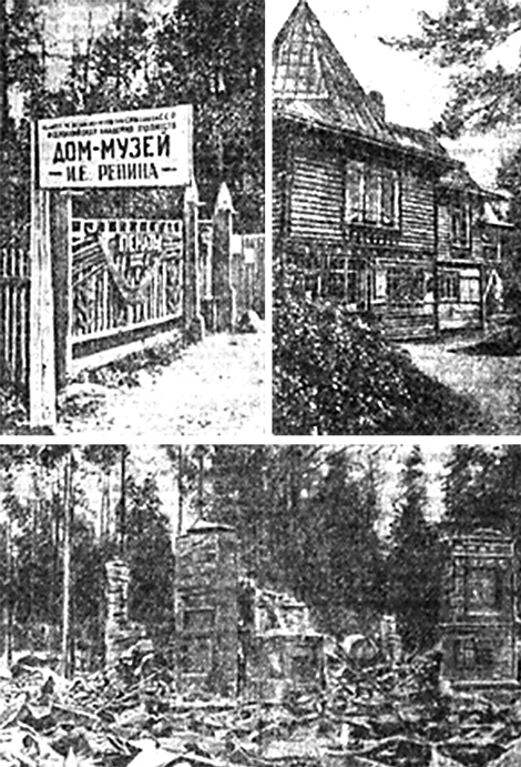 «Пенаты» – знаменитый дом-музей великого русского художника И. Репина в Куоккала. Территория, на которой расположены «Пенаты», временно находилась в руках финских захватчиков. Отступая под ударами Красной Армии, финские вандалы разрушили этот выдающийся памятник русской культуры, где в 1940 году был учрежден Репинский музей.