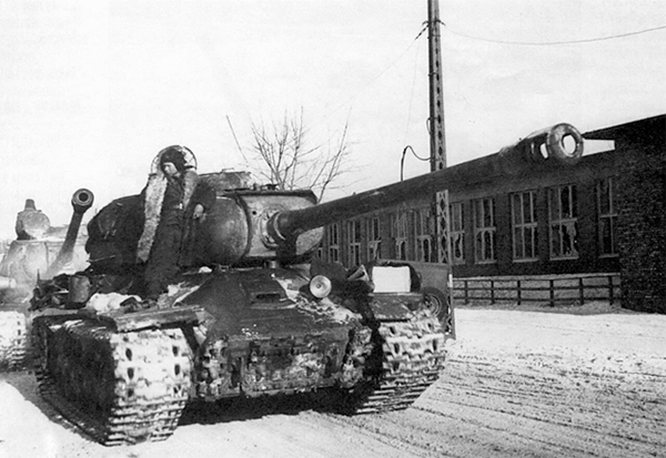Советские тяжелые танки ИС-2 на улицах освобожденной Познани.