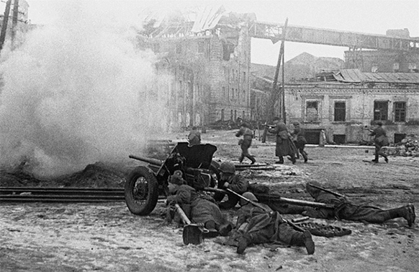 Красноармейцы в бою за город. Февраль 1943 г.![]()