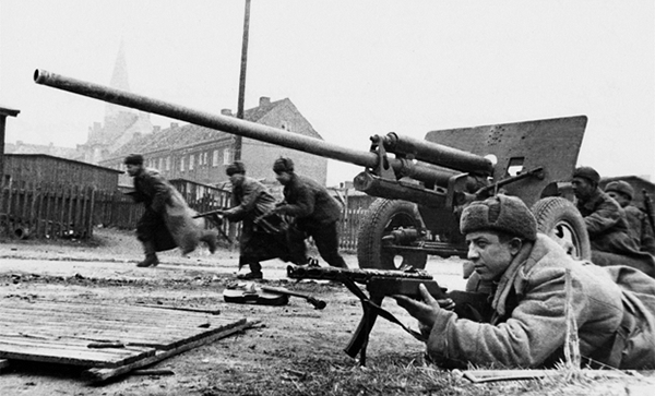 Советские артиллеристы ведут огонь по позициям врага![]()