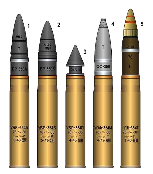 4. Выстрел 53-УОФ-354М со снарядом 53-ОФ-350 (Стальной осколочно-фугасный снаряд).