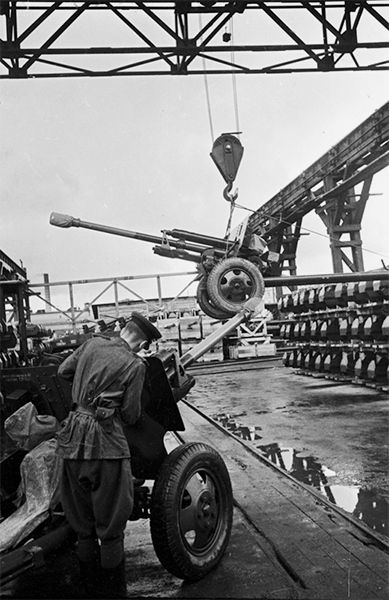 Отгрузка новых орудий ЗИС-3 на площадке военного завода![]()