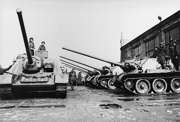 Советские самоходные установки СУ-100 во дворе завода «Уралмаш»
