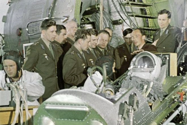 Группа подготовки космонавтов знакомится с космической техникой. 1960 г.