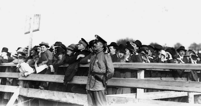 Зрители, наблюдающие за полетами на 1-м Всероссийском празднике воздухоплавания