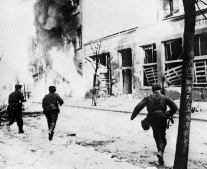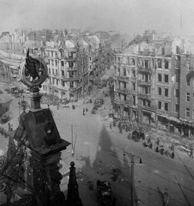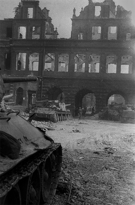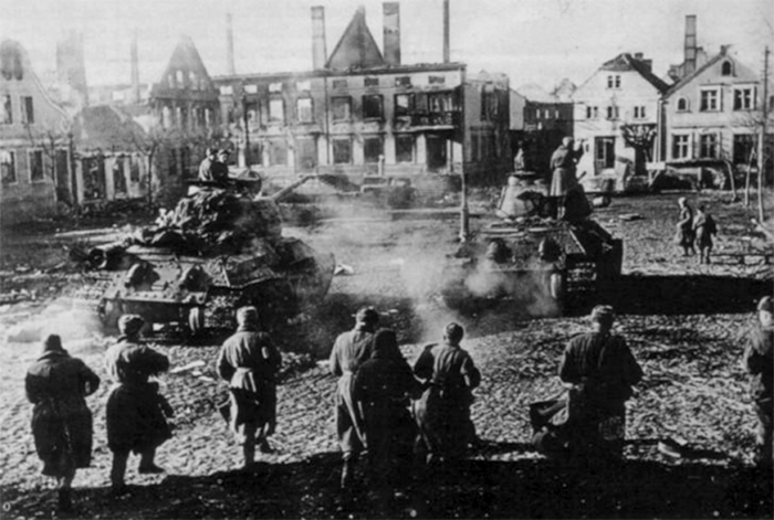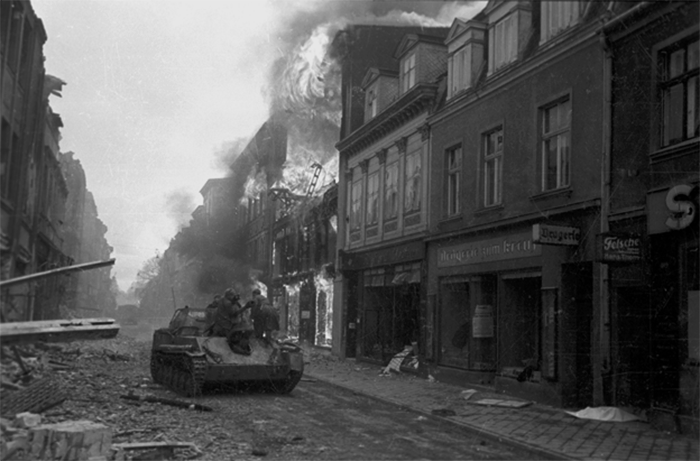 Советская САУ СУ-76М на улице горящего Данцига. Март 1945 г.![]()