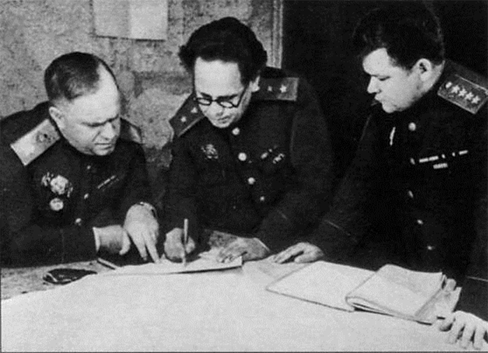 В штабе 1-го УФ. Представитель Ставки Г. К. Жуков, начальник штаба фронта А. Н. Боголюбов