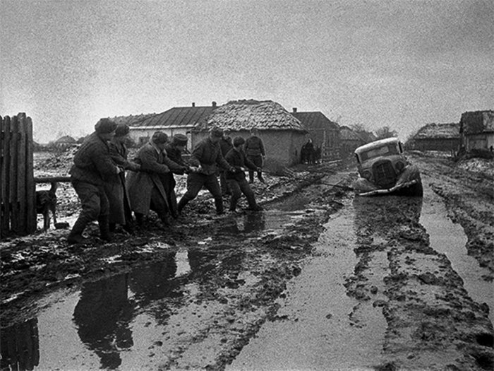 Распутица замедляла темп наступления и затрудняла снабжение![]()