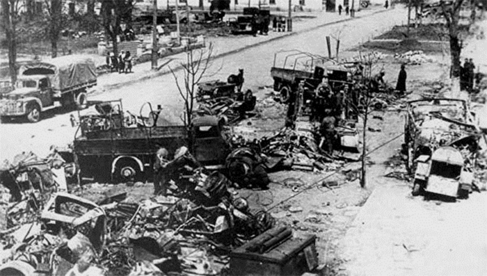 Разбитая немецкая техника на улицах освобожденного Каменец-Подольского![]()