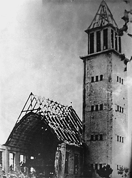 Разрушенная бомбардировками церковь. Нове Замки, март 1945 г.![]()