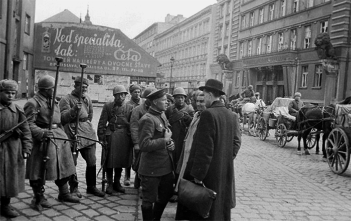 Советские войска в освобожденном от фашистов Брно, 1945 г.![]()