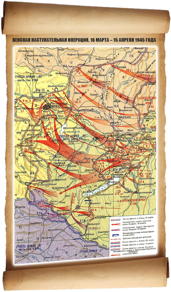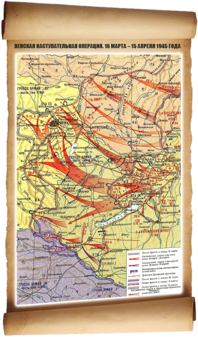 Части 3-го Украинского фронта начали наступление с позиций к югу от Будапешта 16 марта 1945 года. Прорвав оборону противника севернее Секешфехервара, советские войска ударили в направлении Польгарди, Лепшеня и реки Раба. 30 марта 1945 года части 3-го Украинского фронта вступили на территорию Австрии. Освободив города Шопрон и Винер- Нойштадт, 4 апреля 1945 года они заняли подступы к Вене.