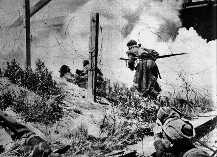 Советские солдаты ведут бой за Имперский мост. 3-й Украинский фронт. Вена. Весна 1945 г.