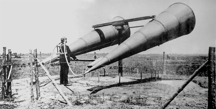 Установки, позволяющие услышать наблюдателю звук мотора приближающего самолета задолго до того, как он появится в поле зрения