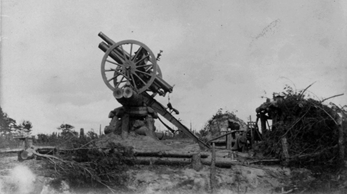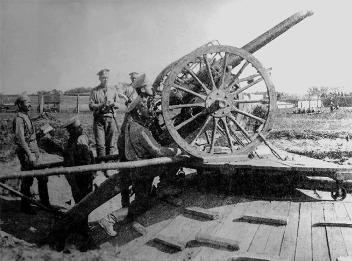Мортира, приготовленная для стрельбы по аэроплану. 1916 г.