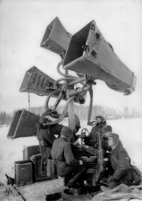 Расчет советского звукоулавливателя ЗТ-5 на позиции. Зима 1941–1942 гг.