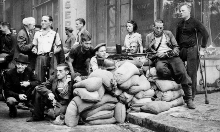 Бойцы французского движения сопротивления во время освобождения Парижа, 1944 г.![]()