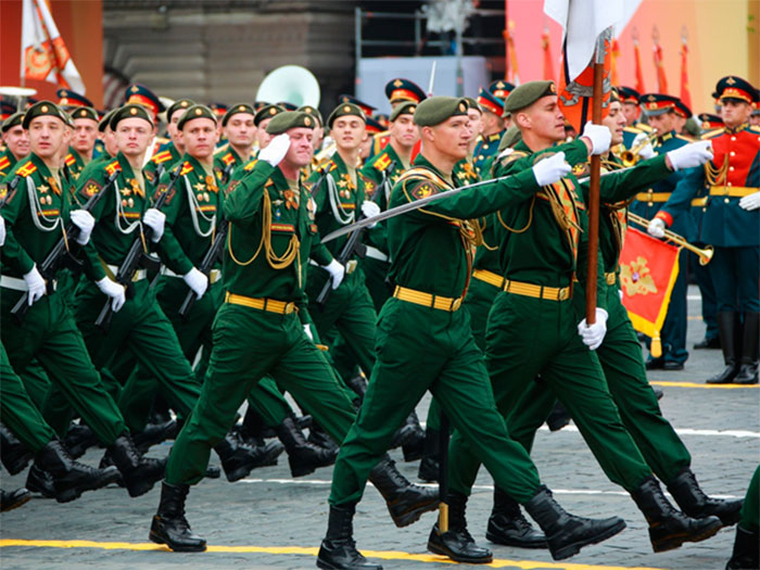 Согласно указу президента РФ от 15 апреля 1996 года в День Победы, при возложении венков к могиле Неизвестного солдата, проведении торжественных заседаний, парадов войск и шествий ветеранов Великой Отечественной войны на Красной площади в Москве наряду с Государственным флагом РФ выносится Знамя Победы, водруженное над рейхстагом в мае 1945 года.
