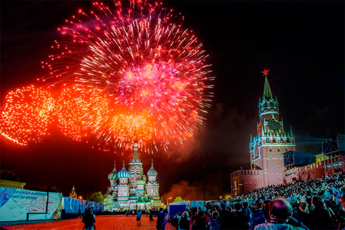 Праздничный салют над Красной площадью в честь Дня Победы![]()