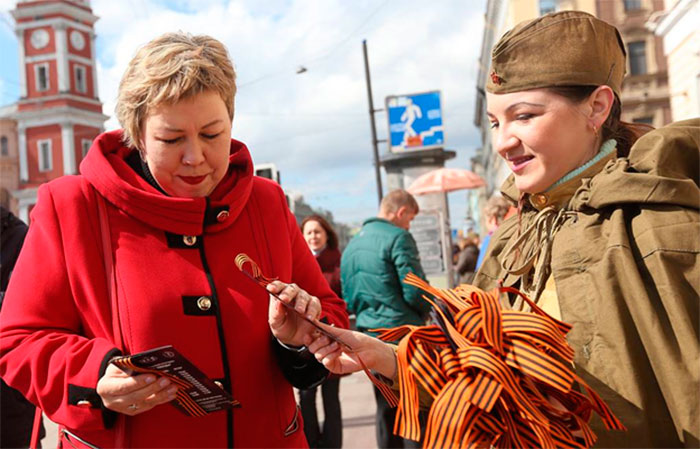 С 2005 года за несколько дней до Дня Победы стартует патриотическая акция «Георгиевская ленточка» с целью вернуть и привить ценность праздника молодому поколению. Черно?оранжевые ленточки стали символом памяти о Победе в Великой Отечественной войне, знаком признательности ветеранам, освободившим мир от фашизма. Девиз акции – «Я помню, я горжусь». Акция охватывает практически всю территорию России, многие страны бывшего СССР, а в последние несколько лет проходит также в странах Европы и Северной Америки.