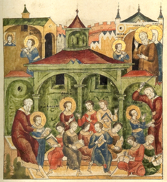 Обучение отрока Варфоломея. Миниатюра из рукописного лицевого