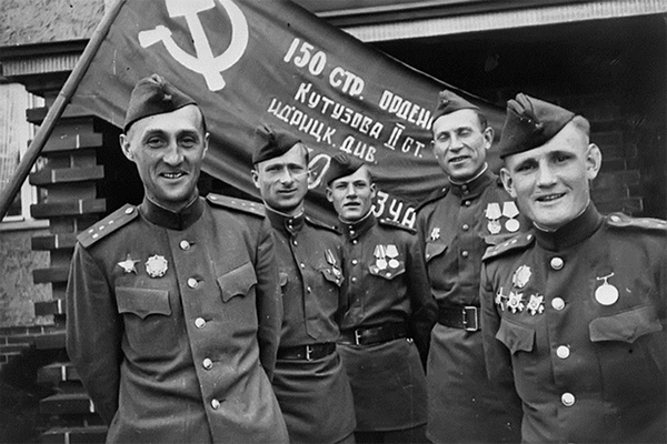Участники штурма рейхстага (слева направо): К. Я. Самсонов, М. В. Кантария, М. А. Егоров,