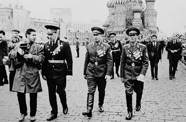 И. Я. Сьянов, С. А. Неустроев у Знамени Победы