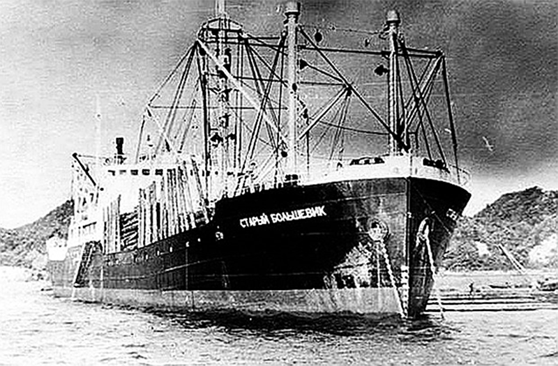 Пароход «Старый большевик» был построен в 1933 году в Ленинграде и относился к разряду крупнотоннажных лесовозов. Его длина около 111 метров, водоизмещение – 8780 тонн, грузоподъемность – 5700 тонн.