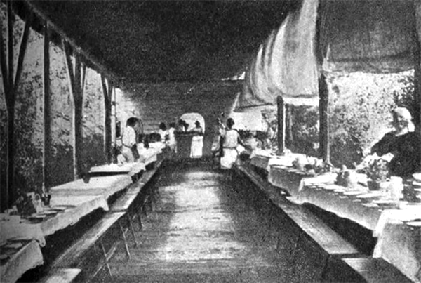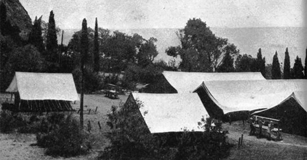 Первые артековцы жили в брезентовых палатках. Позже на берегу построили лёгкие фанерные домики. Для столовой использовалось место под тентом, где было расставлено шесть обеденных столов и скамейки.
