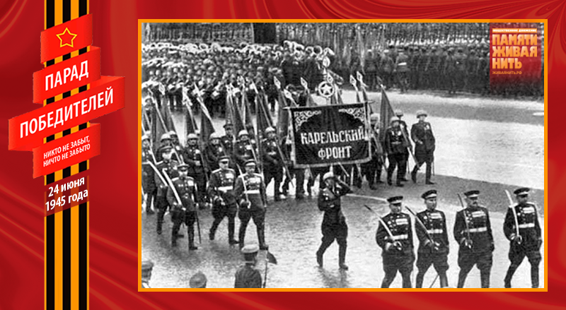 Торжественный марш победителей открыл командующий парадом Маршал Советского Союза К.К. Рокоссовский. Вслед за ним шла группа юных барабанщиков – воспитанников 2-й Московской военно-музыкальной школы. За ними следовал сводный полк Карельского фронта во главе с командующим его войсками маршалом К. А. Мерецковым.