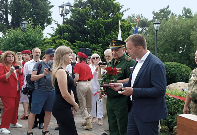 На церемонии присутствовали главы города и района, юнармейцы, представители местных организаций, родственники участников СВО, жители Туапсе, а также создатель монумента – кузнец из села Цыпка Денис Мильченко.
