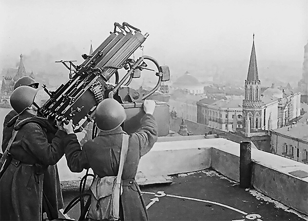 Зенитная пулеметная установка на крыше гостиницы «Москва»![]()