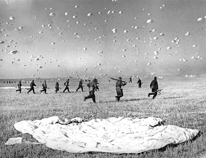 С этого времени и отмечается День десантника. Уже в начале 1933 года в Белорусском, Украинском, Московском и Приволжском военных округах были сформированы авиационные батальоны особого назначения. К лету 1941 года закончилось укомплектование личным составом пяти воздушно-десантных корпусов численностью 10 тысяч человек каждый. Десантники всегда были на передовой в сражениях Великой Отечественной войны. В ходе войны всем воздушно-десантным соединениям было присвоено звание гвардейских. 296 человек были удостоены звания Героя Советского Союза.