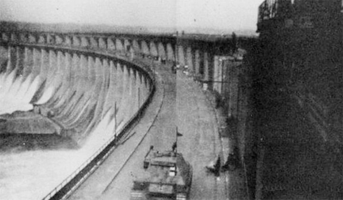Немецкий танк на плотине Днепрогэса.