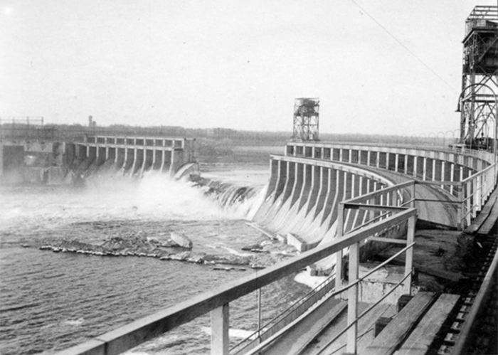 Разрушенная плотина ДнепроГЭС.