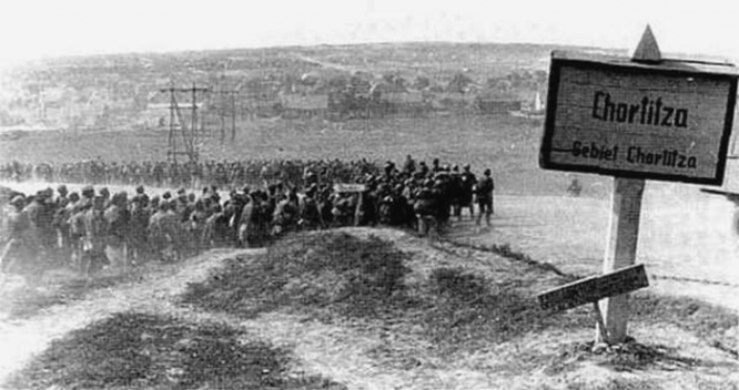 18 августа 1941 года фашистские захватчики захватили окраины Запорожья на правом берегу и остров Хортицу. 4 октября 1941 года Красная армия оставила город. Оккупация Запорожья немецко-фашистскими войсками продолжалась 2 года и 10 дней. За период оккупации в Запорожье погибло около 44000 мирных жителей и военнопленных. Запорожье занимало значительное место в системе обороны немецкого командования.