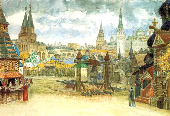 «Стрелецкая слобода». Эскиз декорации к опере «Хованщина».