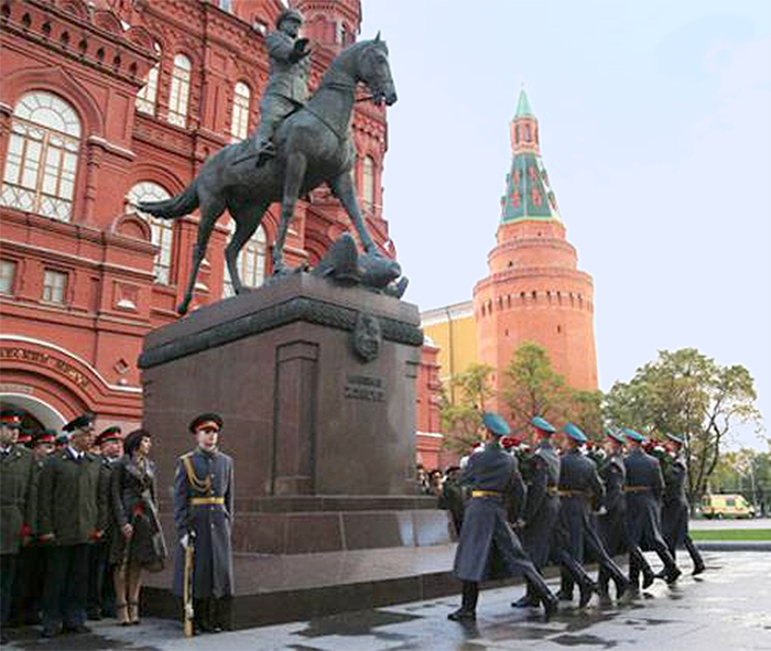 Не забывают военнослужащие Сухопутных войск о славных традициях. Зарождаются и новые традиции, которые нацелены на отдание воинских почестей легендарным военачальникам, ковавших Великую Победу. Одной из таких традиций стало возложение цветов и венков в День сухопутных войск к памятнику Маршалу Г. К. Жукову, установленному на Манежной площади российской столицы. Связана эта традиция ещё и с тем, что именно Г. К. Жуков в 1946 году стал первым главнокомандующим Сухопутными войсками СССР.