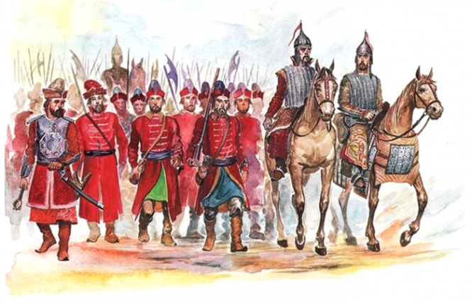 Стрелецкие полки делились на московские и городовые. Под городовыми стрелецкими полками понимались те, которые служили Отечеству за пределами столицы Русского государства. К концу правления Ивана Грозного стрелецкие дружины насчитывали около 12 тысяч человек. По другим данным, речь могла идти исключительно о стрельцах московских.На вооружении стрельцы XVI века имели пищали. Это среднествольное и длинноствольное стрелковое оружие, известное примерно с XIV столетия. По исследованиям лингвистов и историков вооружений, слово «пищаль» со временем породило более привычное для современного человека слово «пистолет». Ствол серьёзным образом укоротился, название видоизменилось.