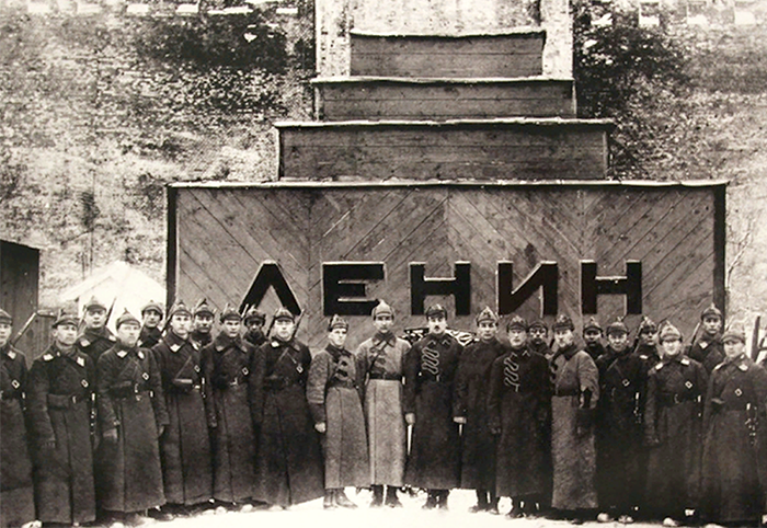 Групповое фото караульных у первого Мавзолея Ленина. 1924 г.![]()