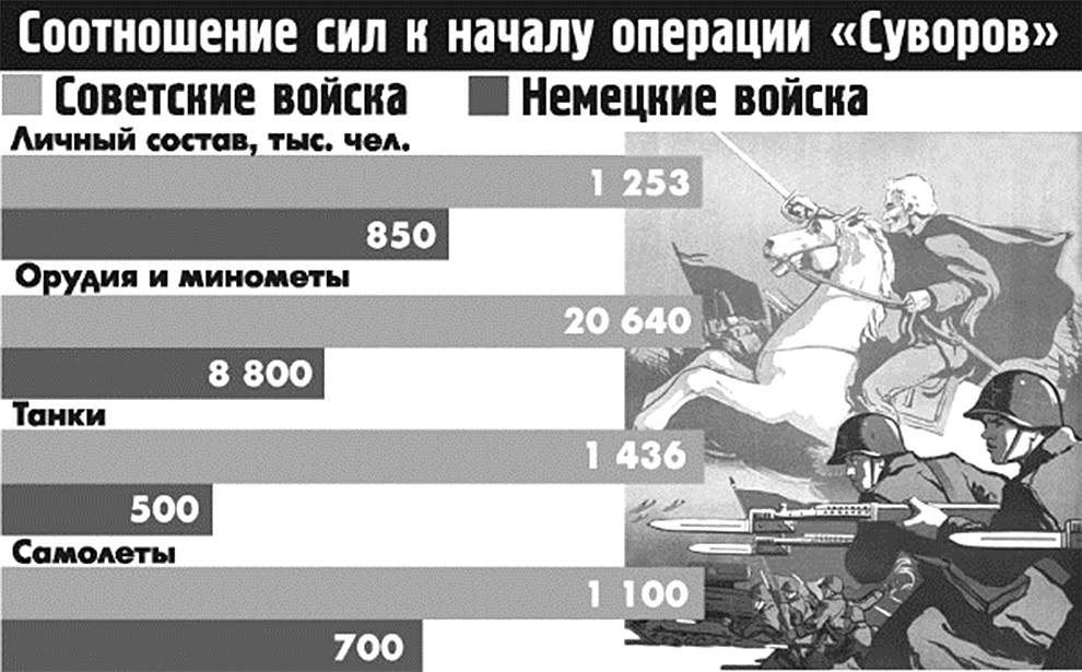 Лейтмотивом действий советских войск стал призыв ЦК ВКП(б): «Вперёд на разгром немецких оккупантов и изгнание их из пределов нашей Родины!»