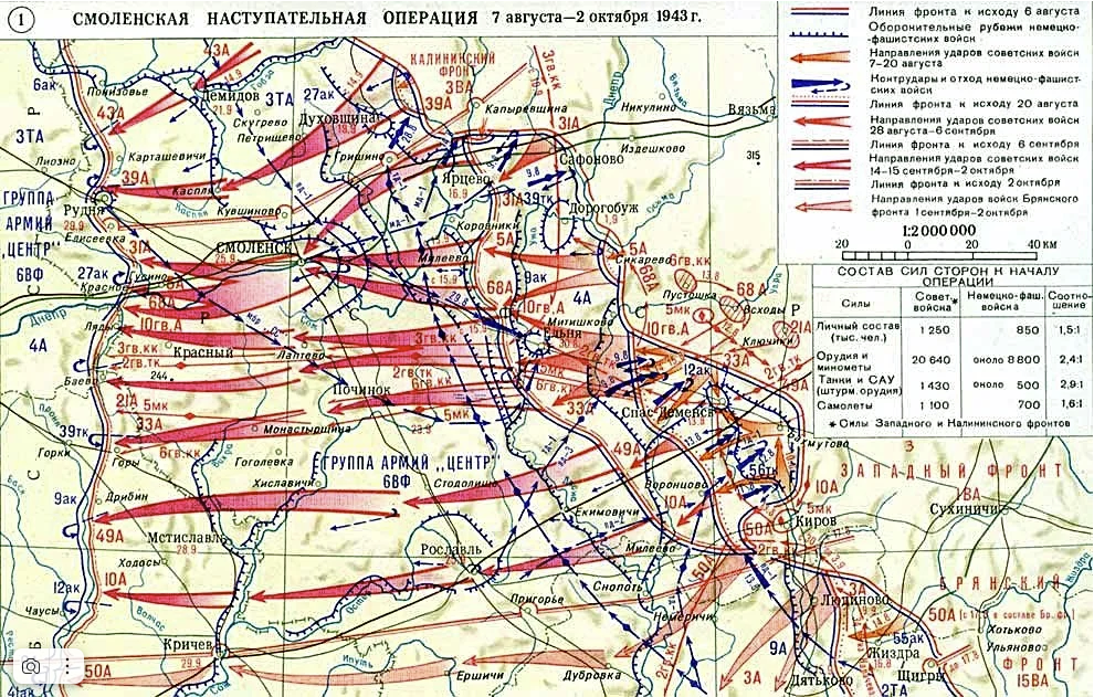 Смоленская операция (кодовое наименование «Суворов») – стратегическая наступательная операция войск Калининского и Западного фронтов, проведённая 7 августа – 2 октября 1943 года с целью разгромить левое крыло группы армий «Центр», освободить Смоленск и не допустить переброски немемецких войск на юго-западное стратегическое направление.