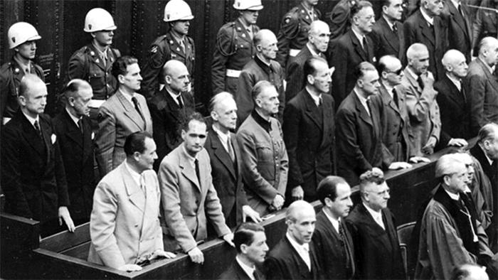Суд над группой главных нацистских военных преступников проходил в Нюрнберге с 20 ноября 1945 года по 1 октября 1946 года. Суду были преданы высшие государственные и военные деятели Третьего рейха: Герман Геринг, Рудольф Гесс, Иоахим фон Риббентроп, Вильгельм Кейтель, Эрнст Кальтенбруннер, Альфред Розенберг, Ханс Франк, Вильгельм Фрик, Юлиус Штрайхер, Вальтер Функ, Карл Дениц, Эрнст Редер, Бальдур фон Ширах, Фриц Заукель, Альфред Йодль, Артур Зейс-Инкварт, Альберт Шпеер, Константин фон Нейрат, Ханс Фриче, Ялмар Шахт, Роберт Лей (повесился до начала процесса), Крупп (был признан неизлечимо больным, и его дело было приостановлено), Мартин Борман (судился заочно, так как скрылся и не был разыскан) и Франц фон Папен.