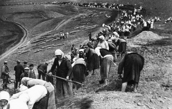 Горожане на строительстве оборонительного рубежа у Тулы![]()